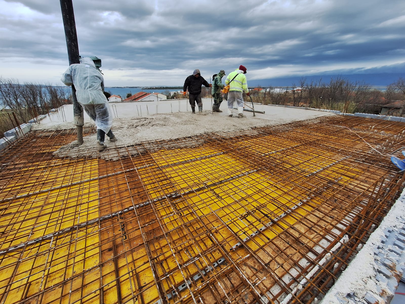 Na hrvaški obali, v kraju Privlaka, poteka obsežen gradbeni projekt, ki vključuje zanimiv objekt s šestimi stanovanjskimi enotami in skupno neto površino 505 m². Investitor je konec lanskega leta izvedel temeljno ploščo in postavil pritličje objekta. Sredi decembra, ko se stvari običajno umirijo, so se dela začasno ustavila, z gradnjo pa se je nadaljevalo sredi januarja. Objekt, kot ga vidite na spodnjih slikah, je zrasel v vsega 3 mesecih. Glede na to, da so v tem času dela zaradi božično novoletnih praznikov dela stala in da je se izvajalec z JUBHome sistemi srečal prvič, je to res zgovoren podatek.