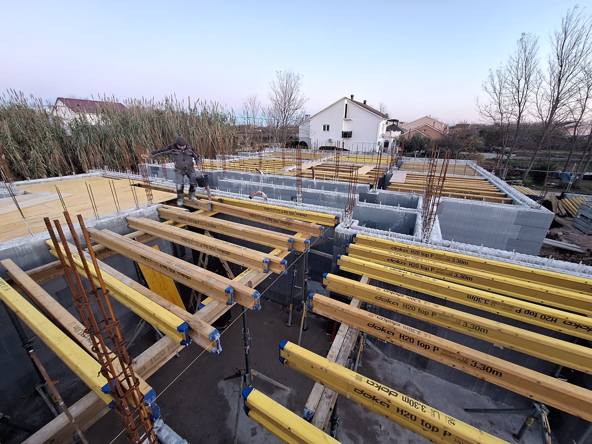 Ena izmed prednosti JUBHome ICF sistemov za gradnjo je ta, da med drugim odpadejo dela opaženja etažnih plošč objekta. V tem primeru je bilo opaženje zaradi predvidenega detajla betonske ograje teras potrebno.