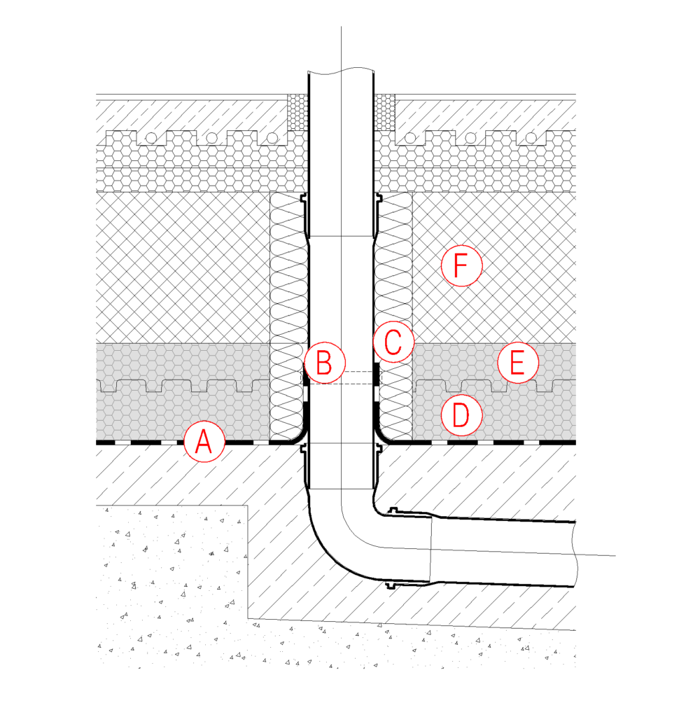 Bei der Herstellung der Installationsdurchbrüche durch die Hülle des Gebäudes, müssen wir vollständige Luftdichtheit, Wasserdichtheit und Wärmeisolation zusichern. Mit einen Gürtel aus weicher Wärmeisolation zwischen dem Rohr und der Stahlbetonplatte gewährleisten wir, das eine große Verschiebung , im Fall eines Erdbebens oder anderer horizontaler Kräfteeinwirkungen, möglich sein kann.