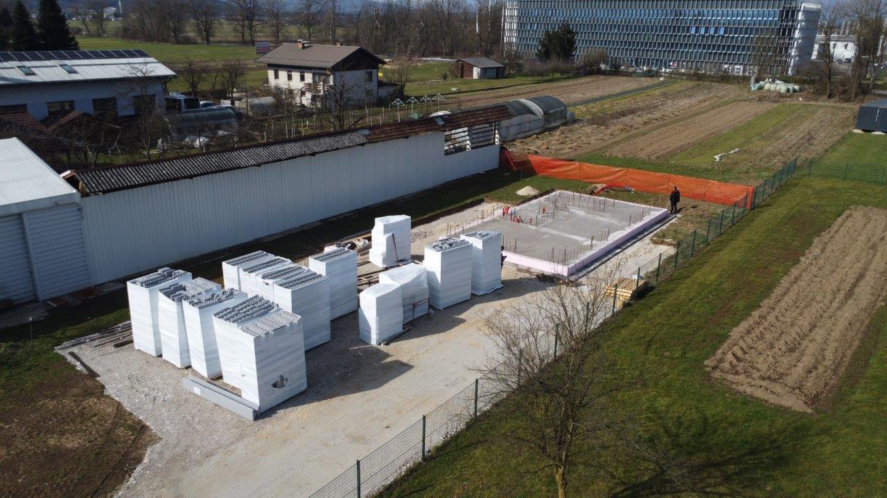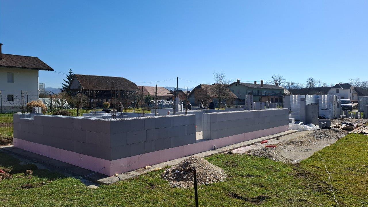 Gradbinec, ki naš sistem odlično pozna, je dela izvedel izjemno hitro – v samo sedmih dneh je dokončal izvedbo temeljne plošče ter postavitev obodnih in notranjih nosilnih sten prve etaže. Nadaljevanje del, vključno s postavitvijo sten nadstropja, bo steklo po izvedbi etažne plošče, predvidoma v zadnjem tednu marca. Več slik sledi v kratkem.