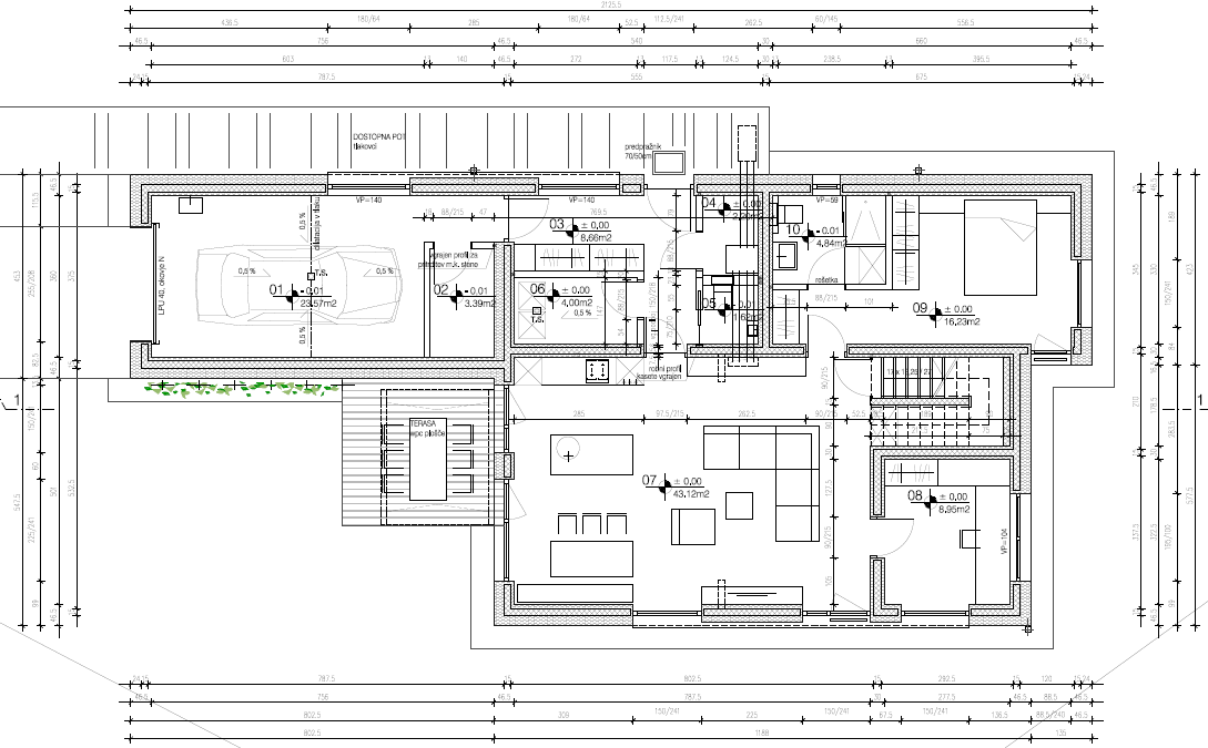 Načrt arhitekture: Na podlagi prejetih načrtov se s stranko in projektantom dogovorimo za minimalne prilagoditve mer konstrukcije za doseganje modularnih rastrov in detajlov, vezanih na JUBHome sistem.