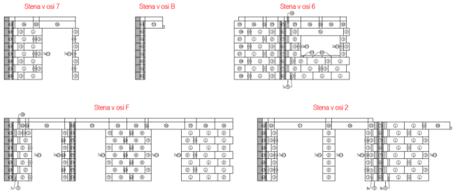 Sestavni načrt: Za uporabo na gradbišču iz 3D modela formiramo sestavni načrt s pogledom na posamezne stene z označenimi pozicijami elementov in njihovo specifikacijo.